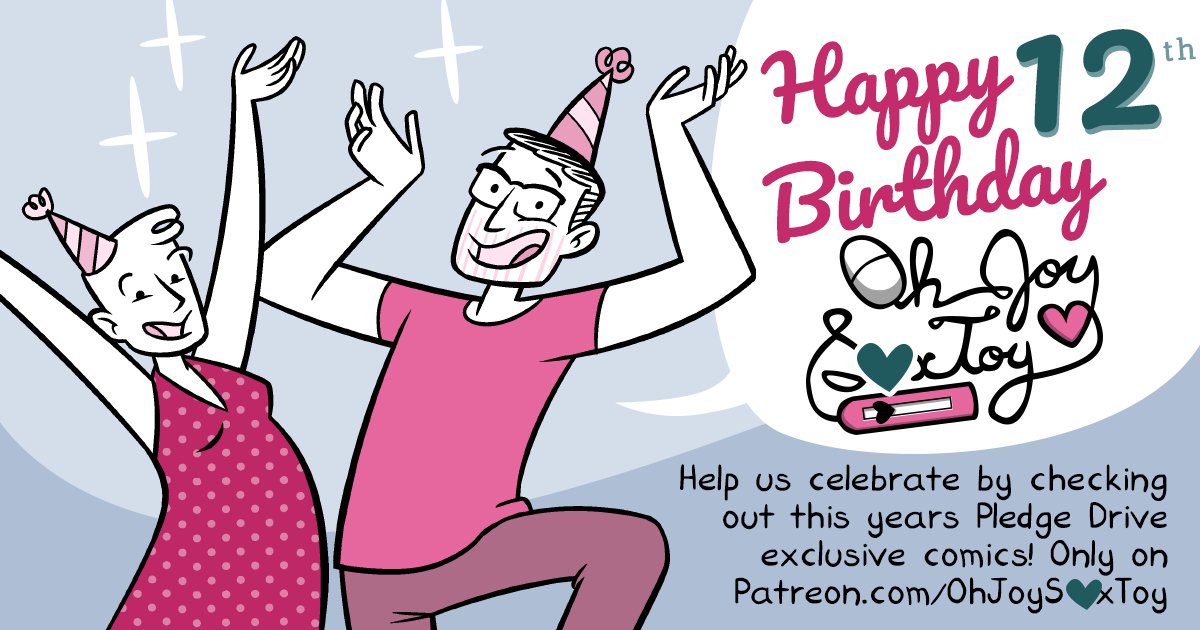 A big panel of Jey and their endo clinking to cans of pop together over a similar purple galaxy background like in page 4. Jey says “Now, POPs aren’t perfect, I mean—what is? Am I right? But not having my period again?! HUGE! INCREDIBLE!”