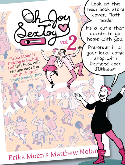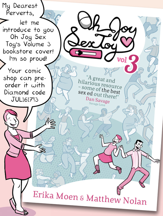 Also did you hear, we’ve been given our Diamond book codes for the book store versions of Oh Joy Sex Toy! Woo Woo! Check it out and have a look at our new covers!!!