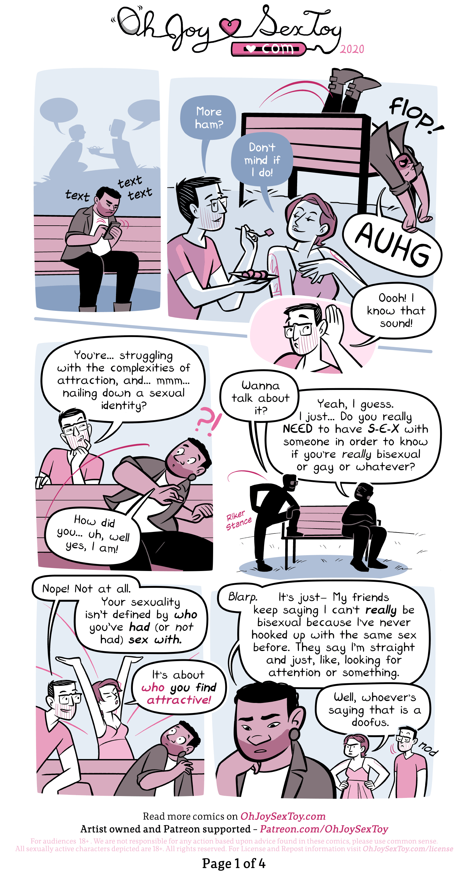 The person responds, “Yeah, I guess. I just… Do you really NEED to have S-E-X with someone in order to know if you’re really bisexual or gay or whatever?”