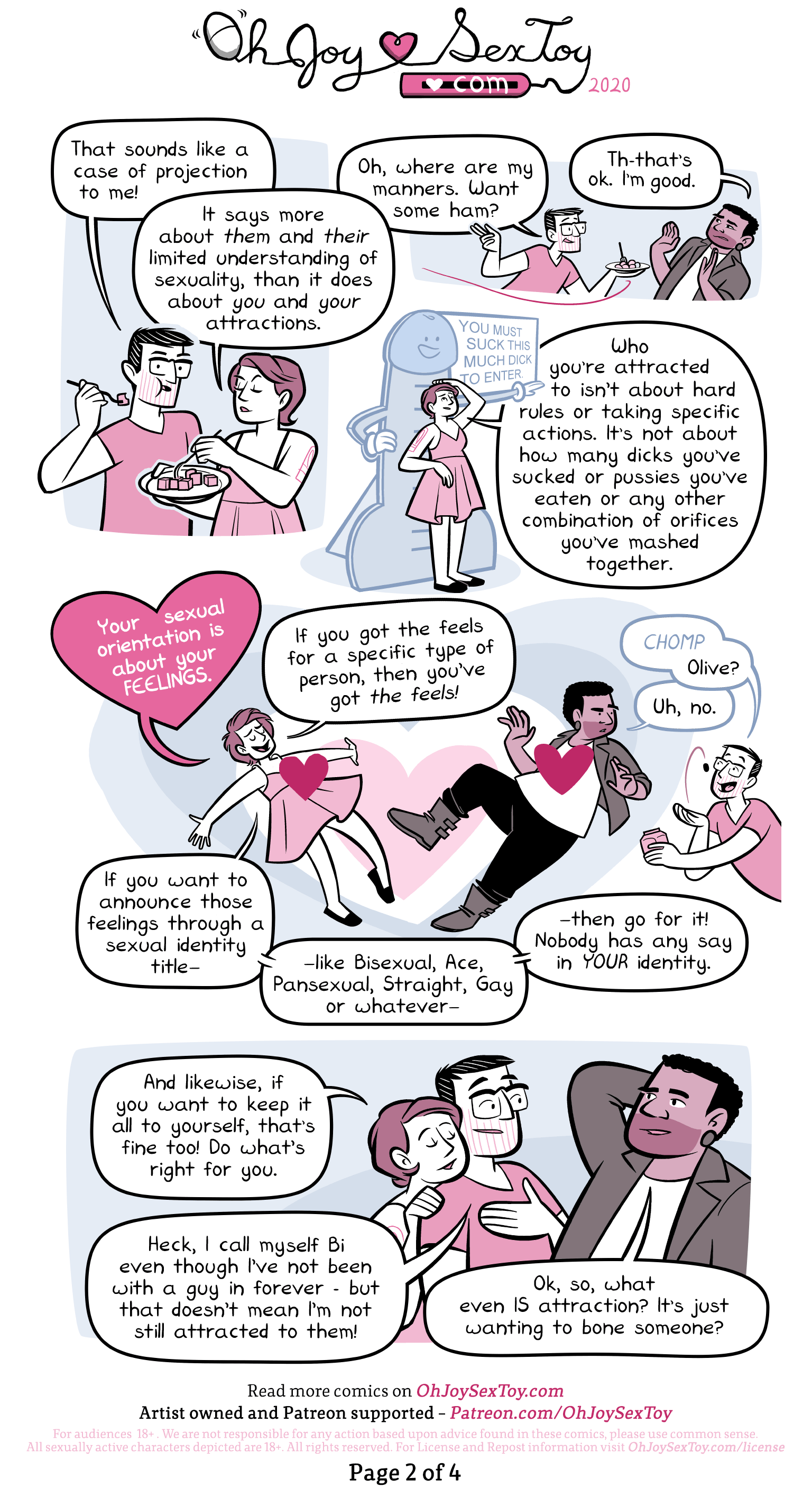 She says, “If you got the feels for a specific type of person, then you’ve got the feels! If you want to announce those feelings through a sexual identity title - like Bisexual, Ace, Pansexual, Straight, Gay, or whatever - then go for it! Nobody has any say in YOUR identity.”