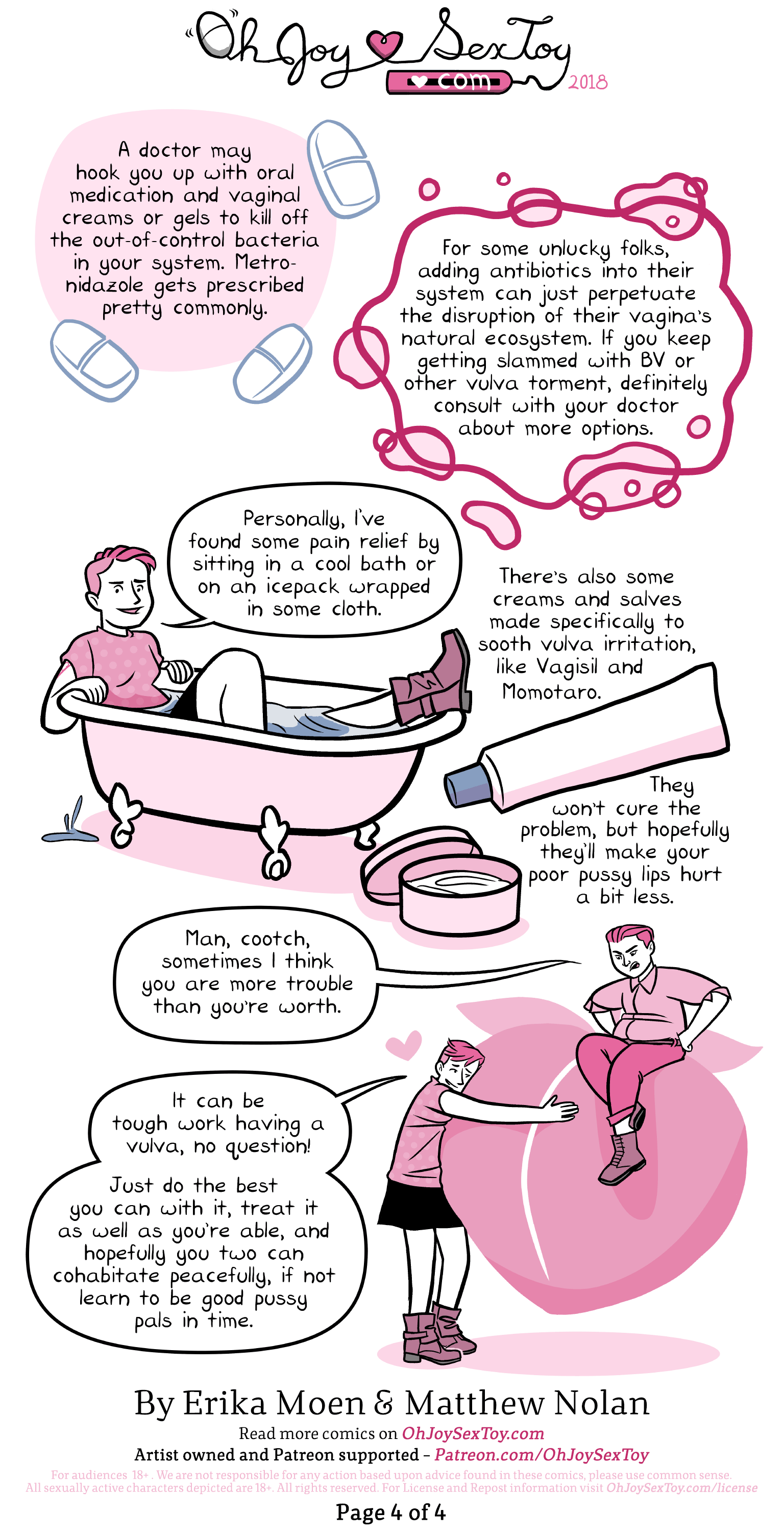 There’s some pockets of misinformation out there that have labeled BV an STI, though it is not. BUT some STIs (gonorrhea or trichomoniasis) share the same symptoms! Plus, BV can also show up completely symptomless, which is a bugger because how can you fight it if you don’t know it’s there? So double talk to a doc if you feel something funky goin’ on with your downstairs!