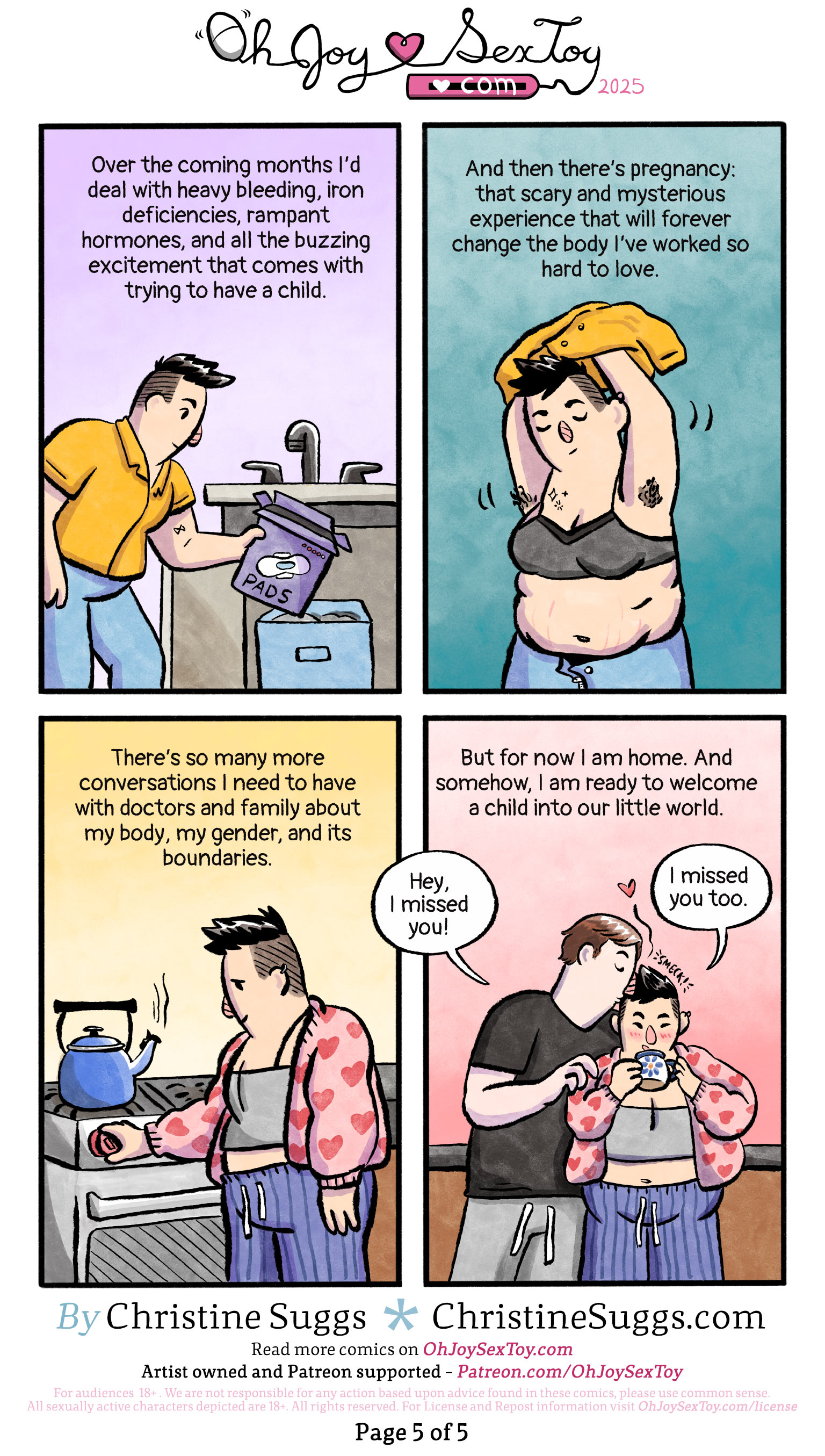 Todays comic is a slice of autobio, a snippet in-between; a queer person exploring what pregnancy means to themselves and the world around them. Hope you love it as much as we do!