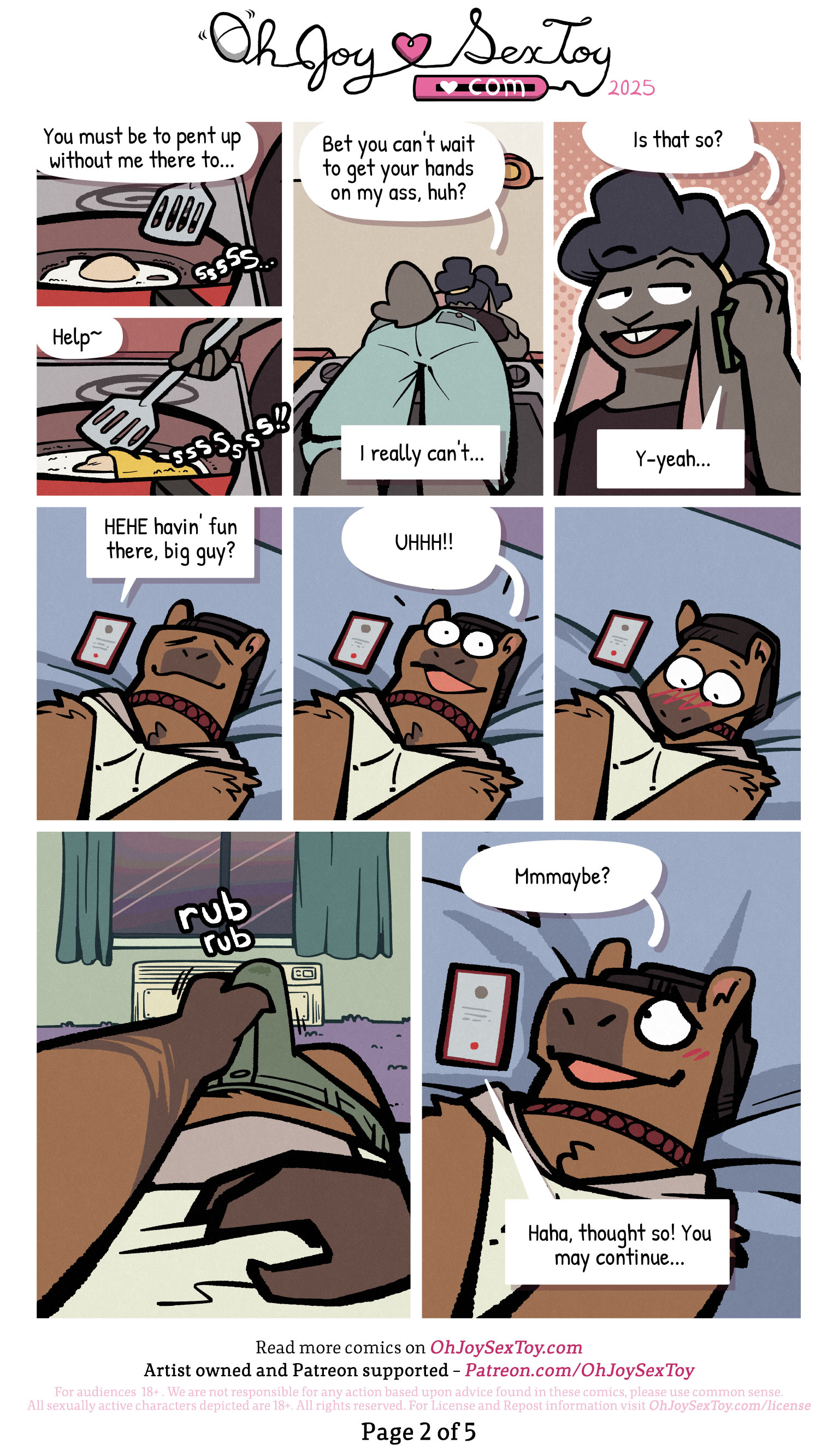 The phone call over, Abby gets to work washing their dishes as they day dream about their partner talking on his phone to them. The daydreams begin growing and filling with more and more intense images of all the sexy shenanigans that Bently just did in that hotel room so far away until finally Abby throws their hands to their head as they exclaim, "GAAAAAAHH!!!" in frustration.