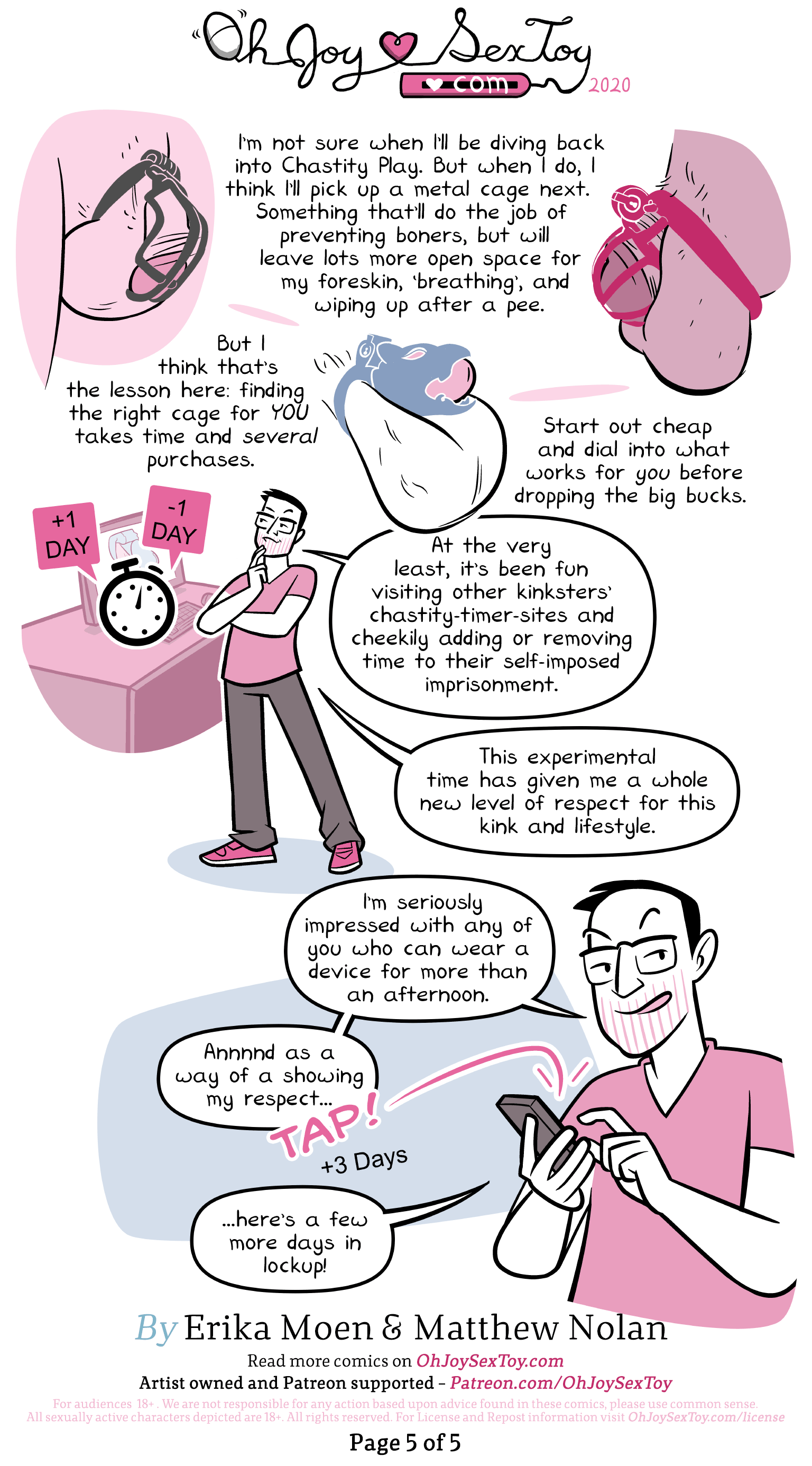 I’ve been sitting on this comic a little while, as I love the idea of chastity play but keep having trubs with wearing a device for any time longer than a few hours. Which always seemed like it defeated the point! BUUUUUTTTTT since we’re all locked down and isolated I thought it might be fun one to finally finish up, even though I don’t yet feel like an expert in the subject. Denial can be a really fun form of play, and I know these devices can mean so much more to so many other folk! So I hope you all like the comic.