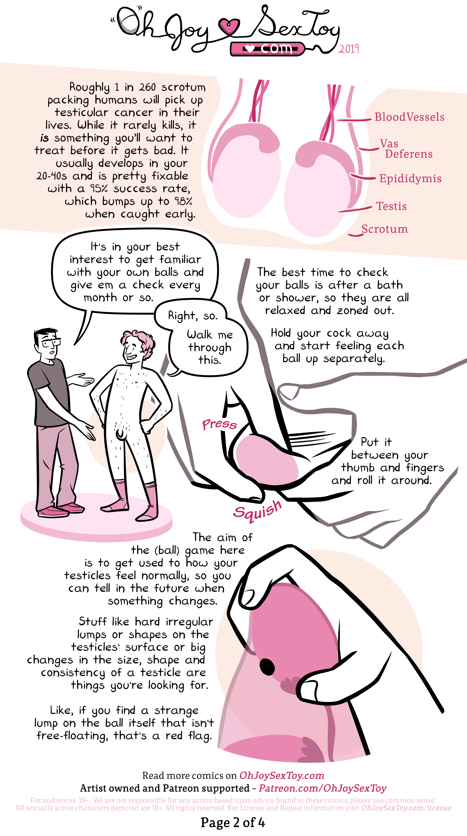 In all seriousness, testicular cancer is something you ought to get familiar with if you’ve got testes. It’s worth learning about and reminding yourself to check your balls every so often. You don’t need to become an expert, but at least learn what feels normal for your body so you can tell when it becomes un-normal and worth a doctor’s visit.