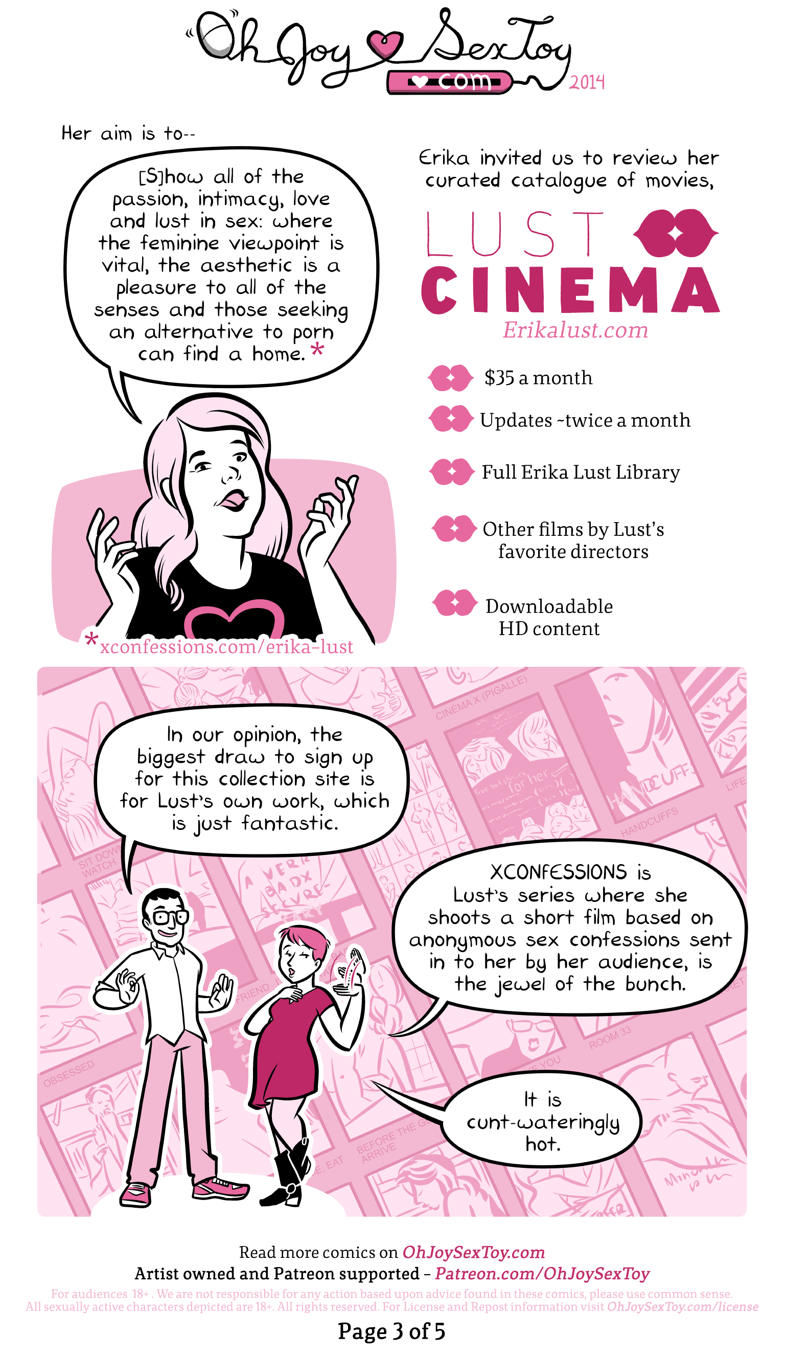 Caption: Erika invited us to review her curated catalogue of movies, Lust Cinema ErikaLust.com. $35 a month. Updates twice a month. Full Erika Lust library. Other films by Lust's favorite directors. Downloadable HD content.