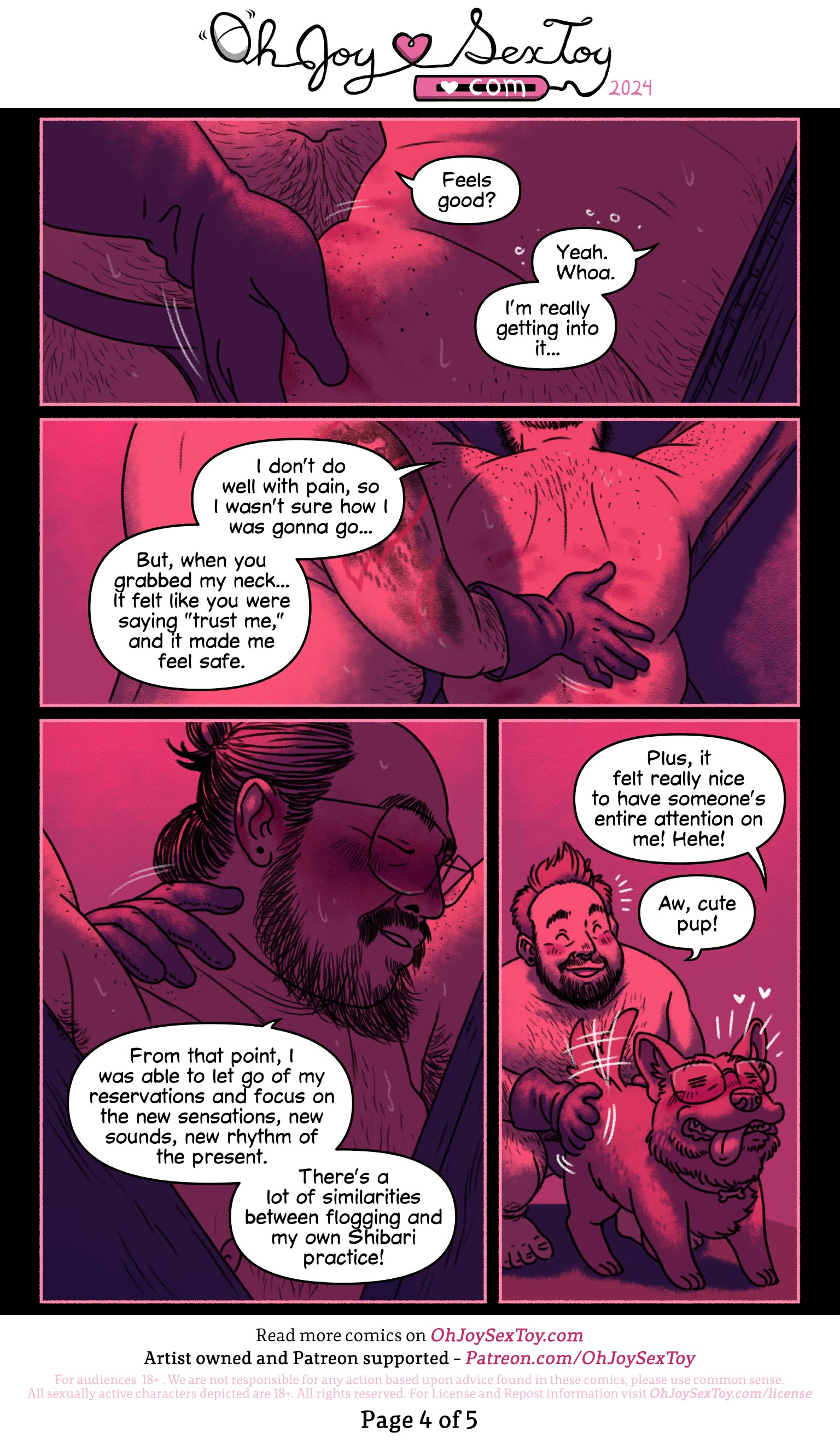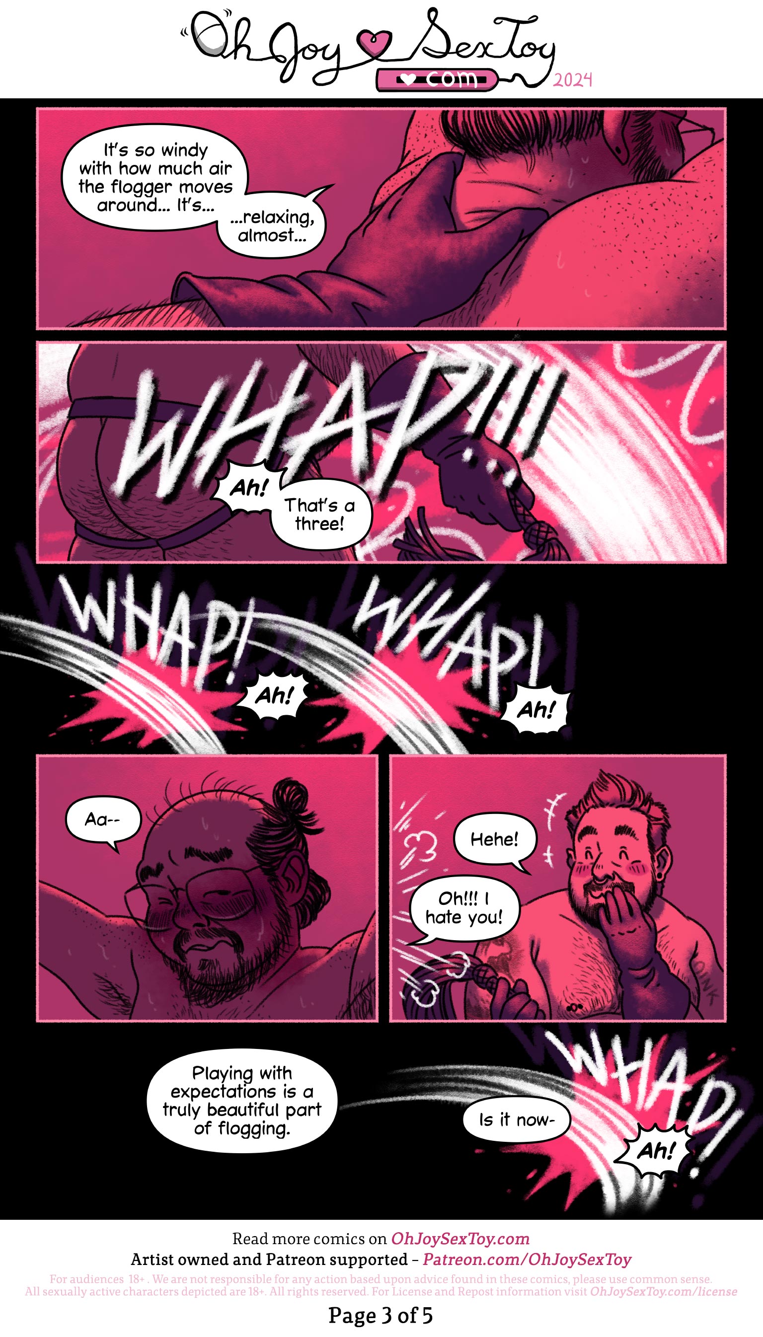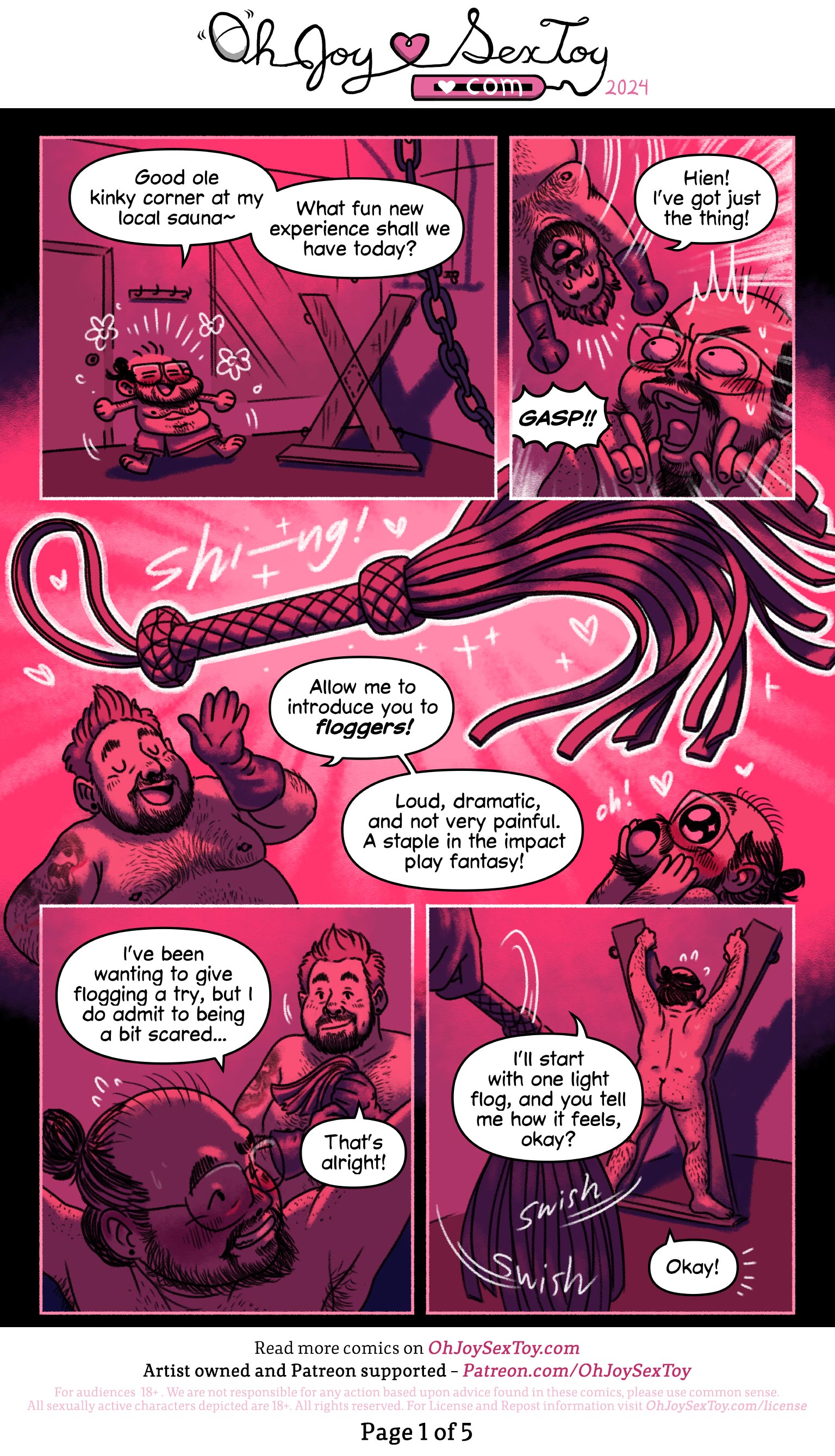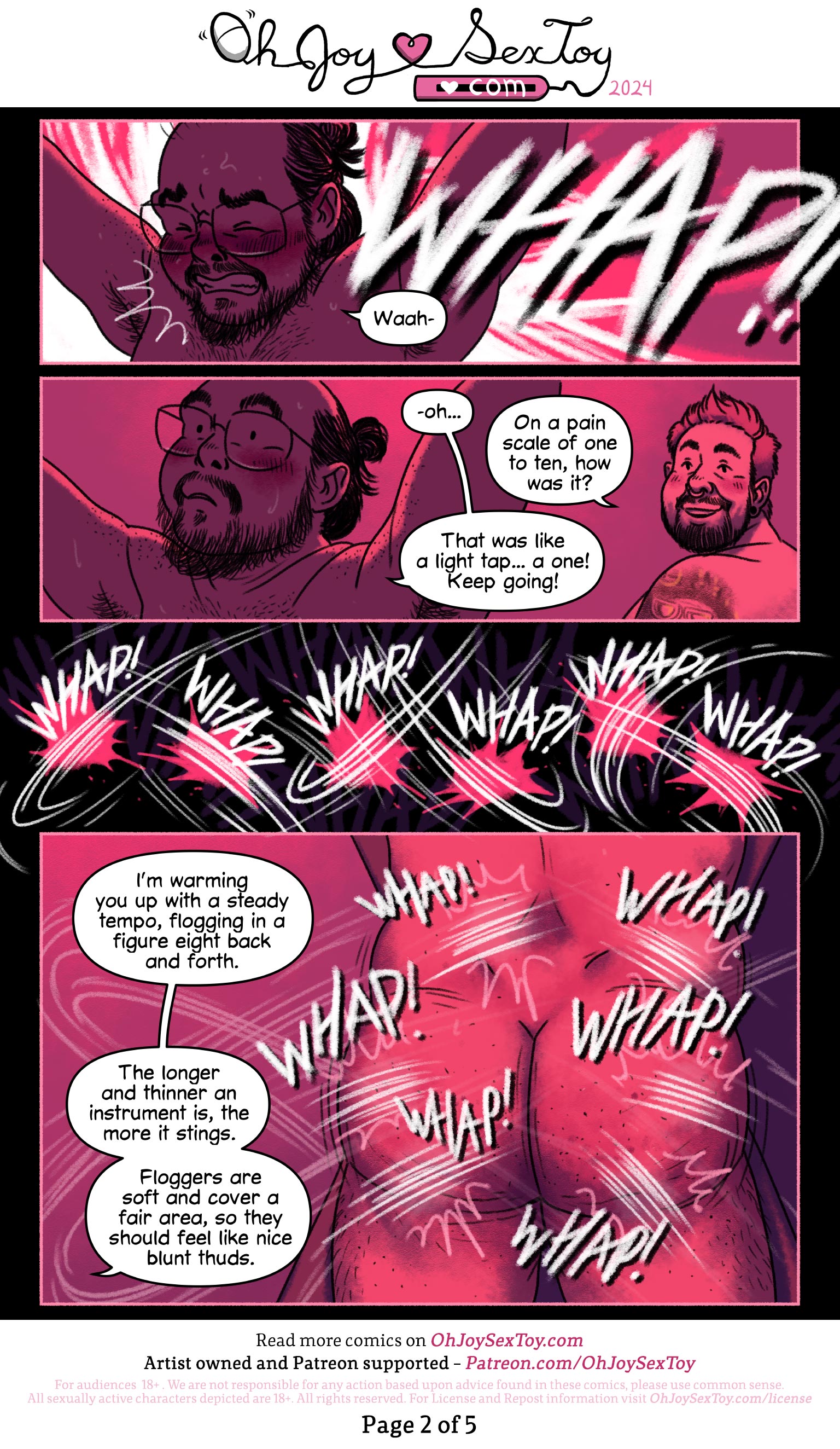 Hien Pham doesn’t beat around the bush with his comic on flogging. Get into the swing of things and follow along as he whips up some fun. This is a fun showcase of a shared intimate moment between two kinkster friends, and that’s just lovely to read. Thank you as ever Hien, we’ll get you that Magic Wand I swear =D