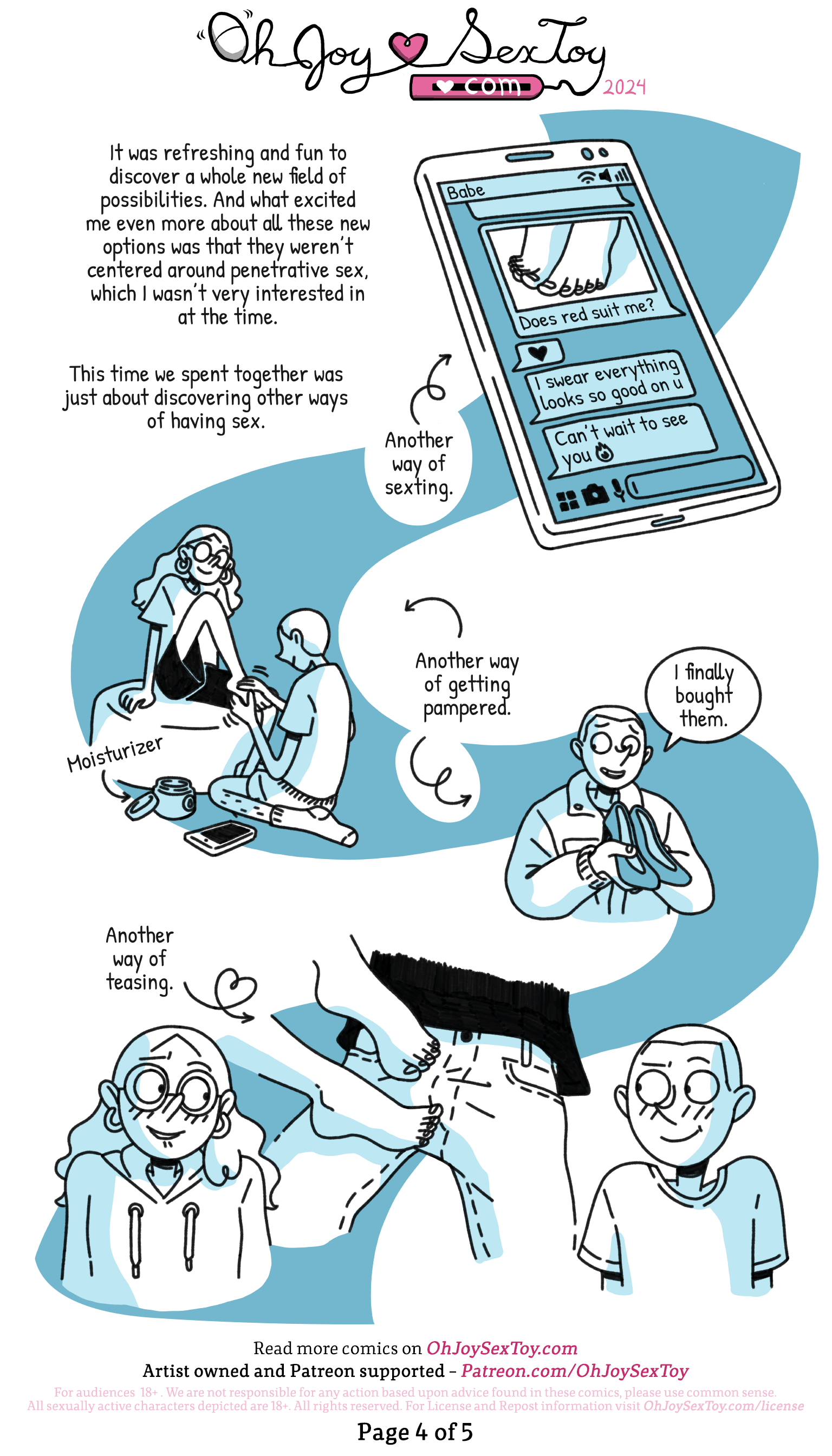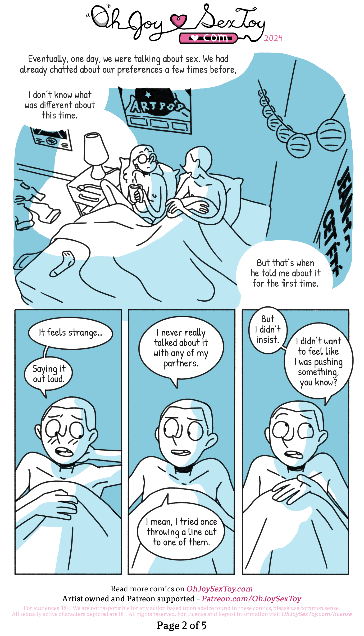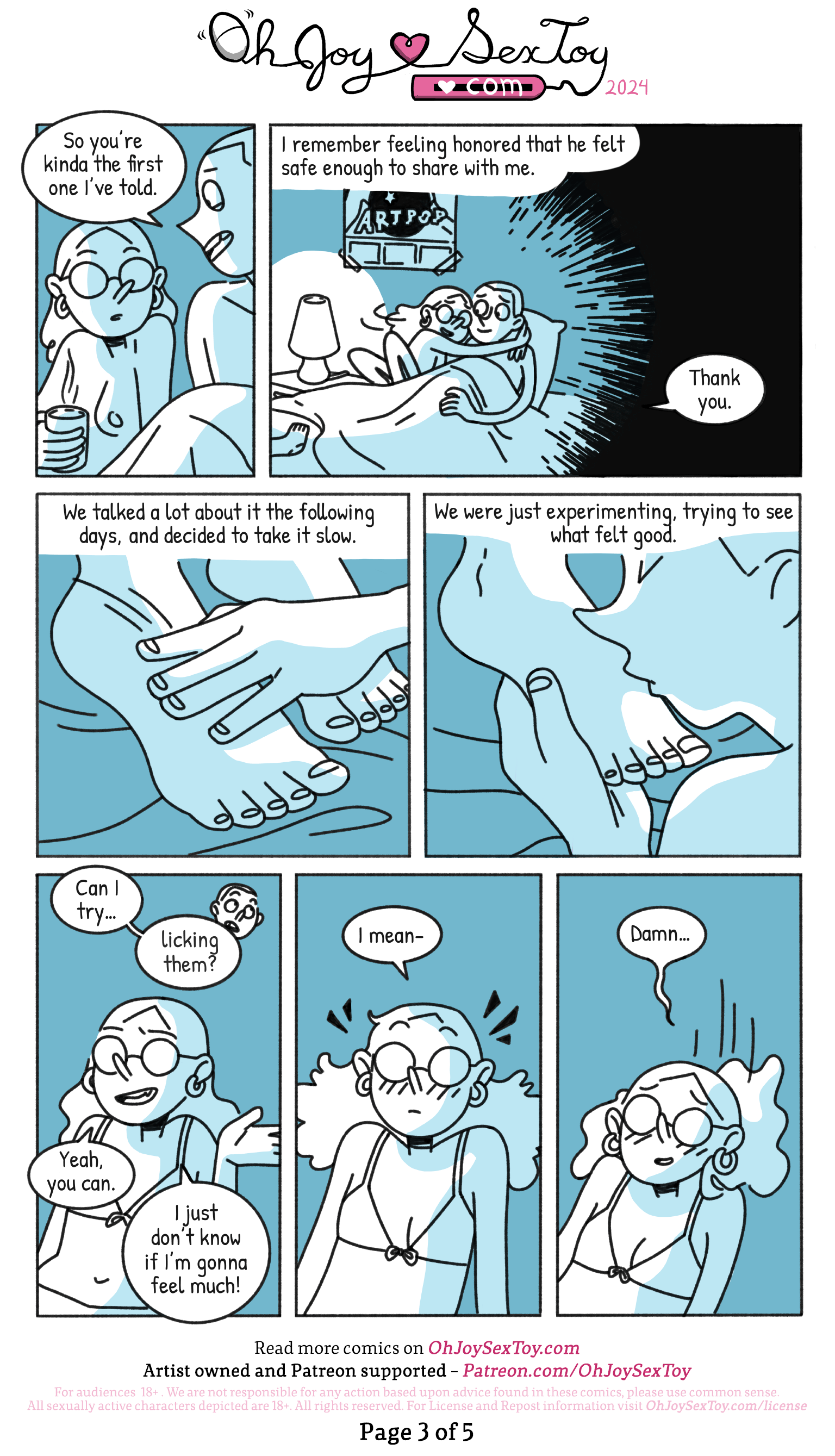 Oh Joy Sex Toy is paid for and supported by Patreon, where readers like yourself can come and support these comics and transcriptions, while ALSO getting bonus comics! Come check it out. https://www.patreon.com/OhJoySexToy