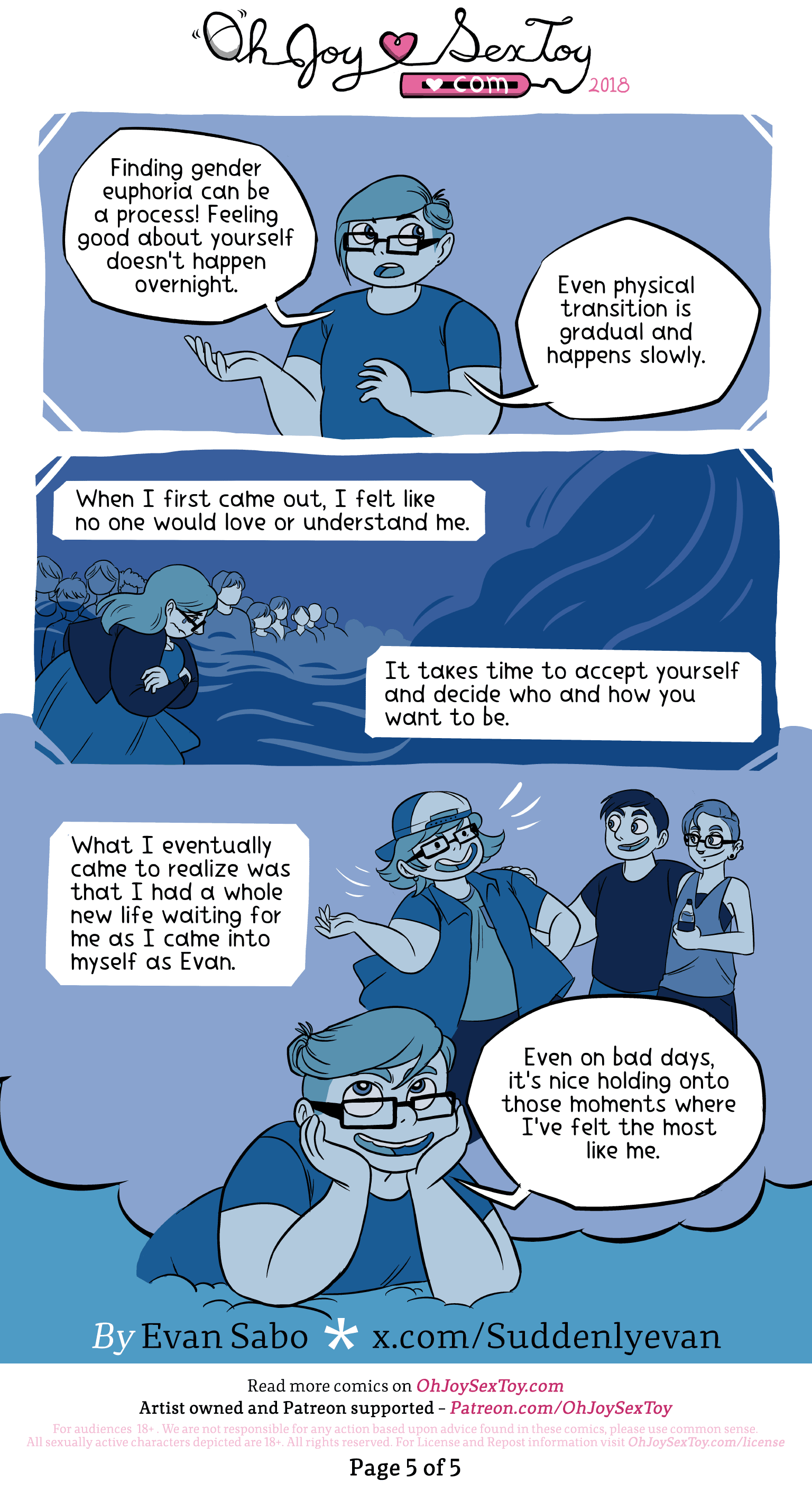 "Finding gender euphoria can be a process!" Evan continues. "Feeling good about yourself doesn't happen overnight. Even physical transition is gradual and happens slowly."