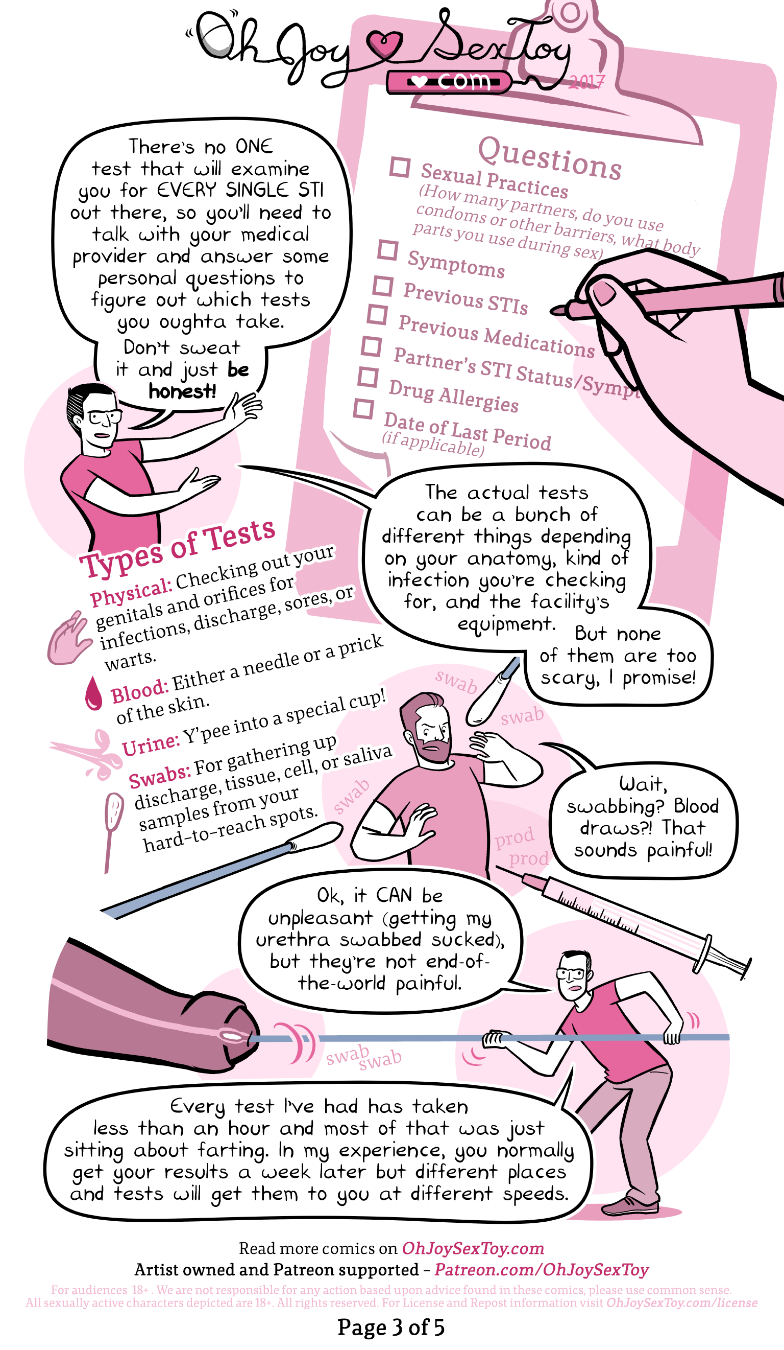 To try and start it right, today we cover getting tested for Sexually Transmitted Infections (STI Testing!). If you want to be part of the larger sexual world, it’s something you gotta do at least a few times in your life, and well, its not as scary as it seems. Being a good considerate sexual human is only a swab, blood draw and pee away, and honestly no matter your reasons or results you’ll be happy getting it done and knowing your status.