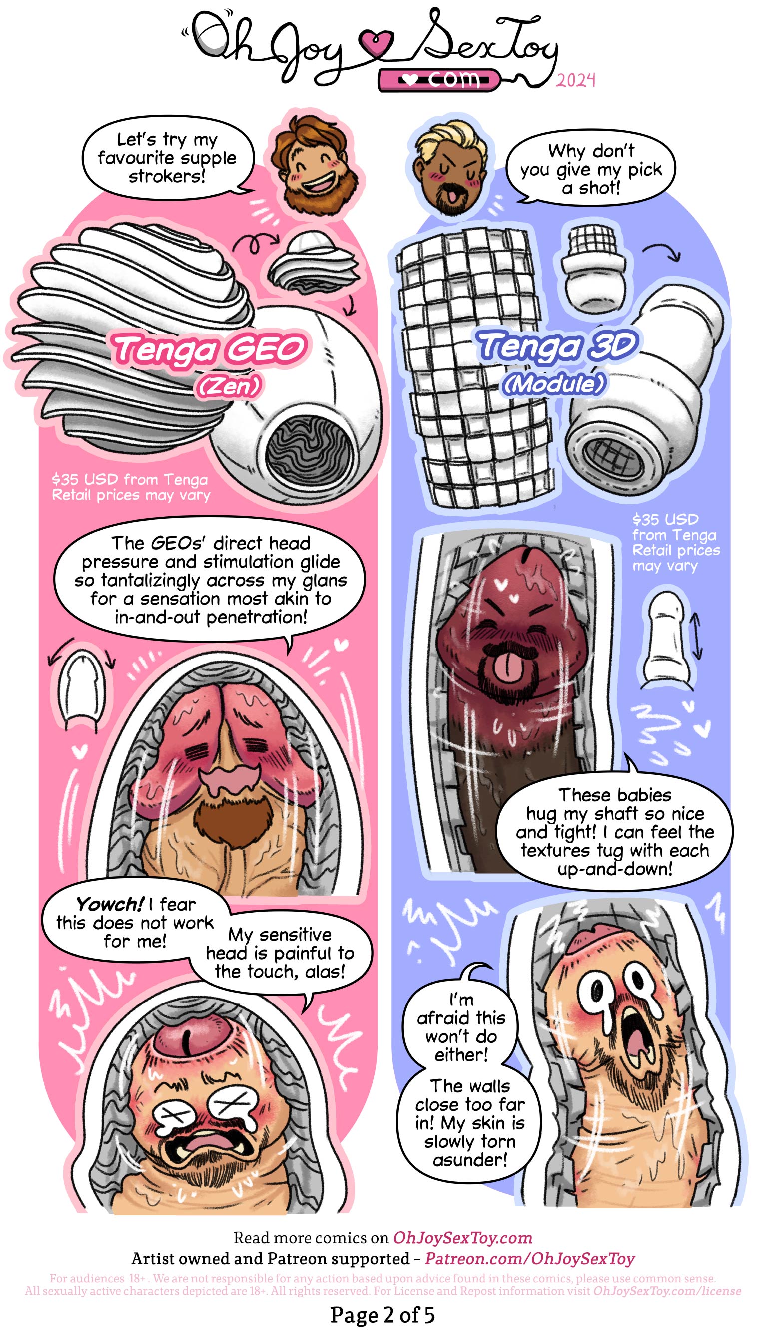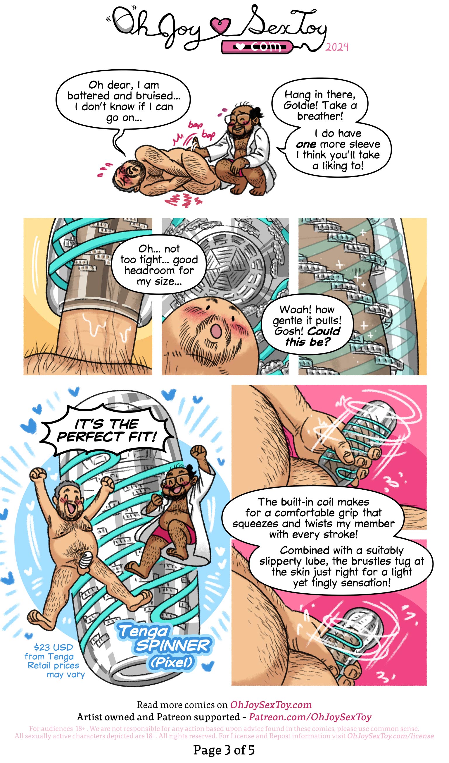 I only focused on finding the right fit for a specific dick in this comic, but Matthew has done amazing detailed reviews for each of these sleeves! I’m definitely on the same page with him on his findings, so please check them out here: GEO, 3D, SPINNER! Thank you to Matt & Ziggy for working with me and for pushing my comics to be the best they can be! Thank you to the folks at Tenga for sending me these wonderful inspiring toys. Finally, thank you to one Woody for helping me with the tests and research for this comic! You’re a good boy, bubba <3