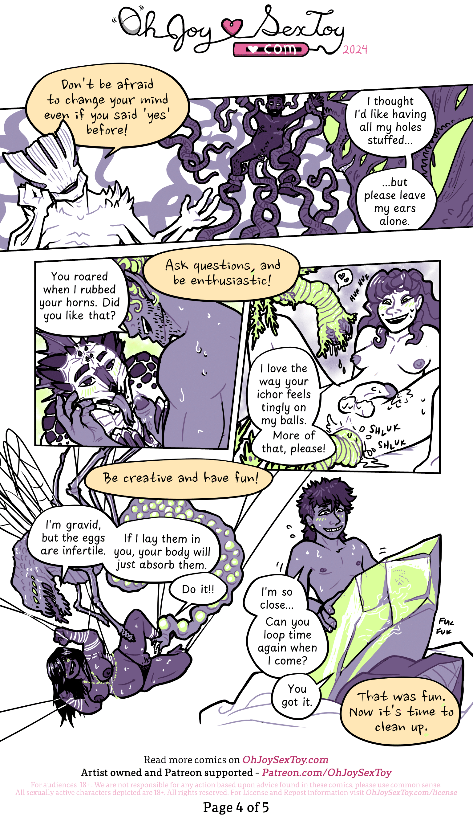 $5 burning a hole in your pocket? Come and support OJST and it’s efforts to make free, weekly, sex positive comics. For the price of a coffee you can help keep this company going: more now than ever! In exchange, get access to a bunch of behind the scenes stuffs, our little community, and a bunch more. We keep hiring folks to make these comics, because we know how impactful it can be when some one in need comes across the right comic. No joke; our archives are fast approaching 600 comic, all of them are freeeee; keep us going, and we’ll keepmaking these as long as we can!