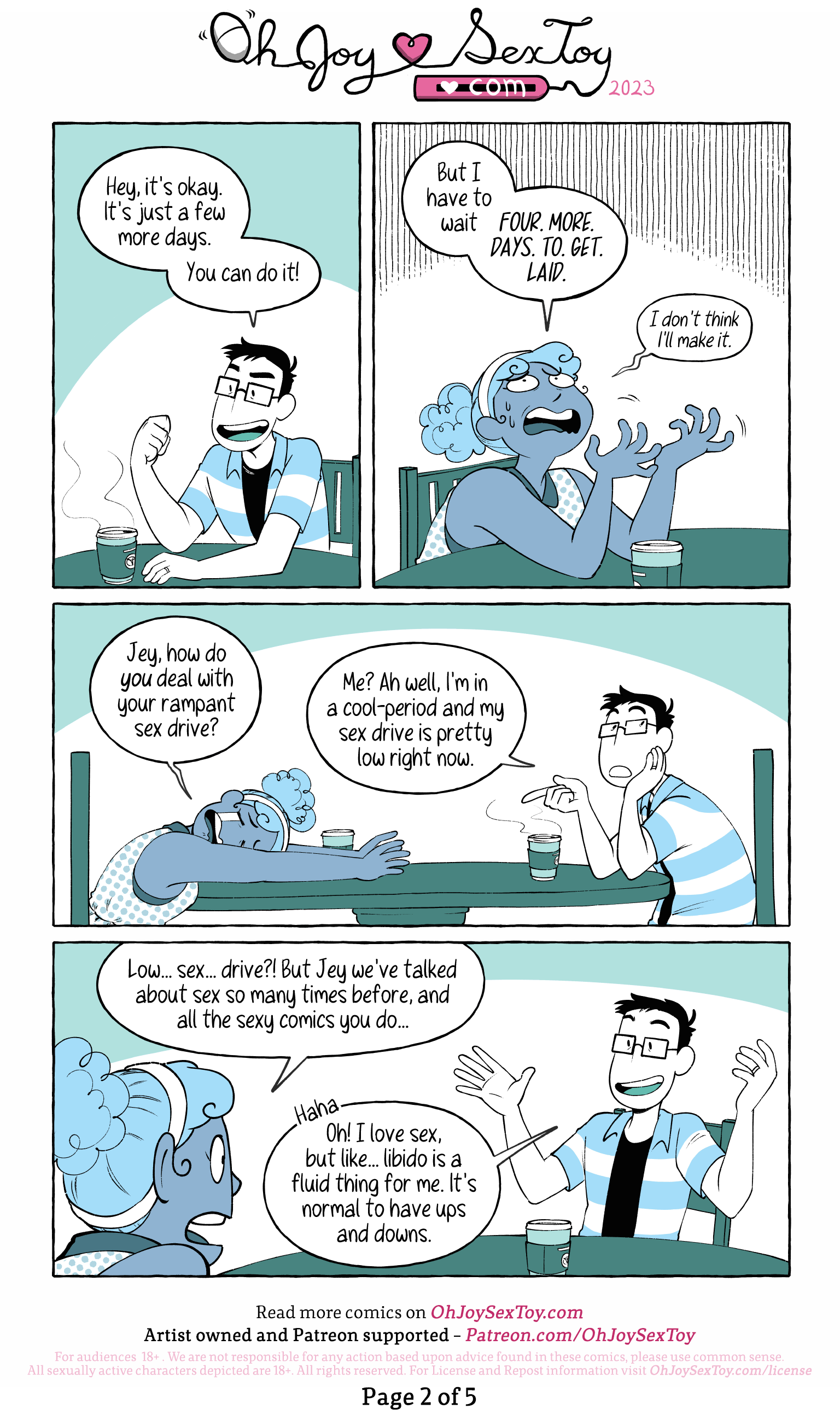 "Low... sex... drive?!" The friend reacts in shock. "But Jey we've talked about sex so many times before, and all the sexy comic you do..."