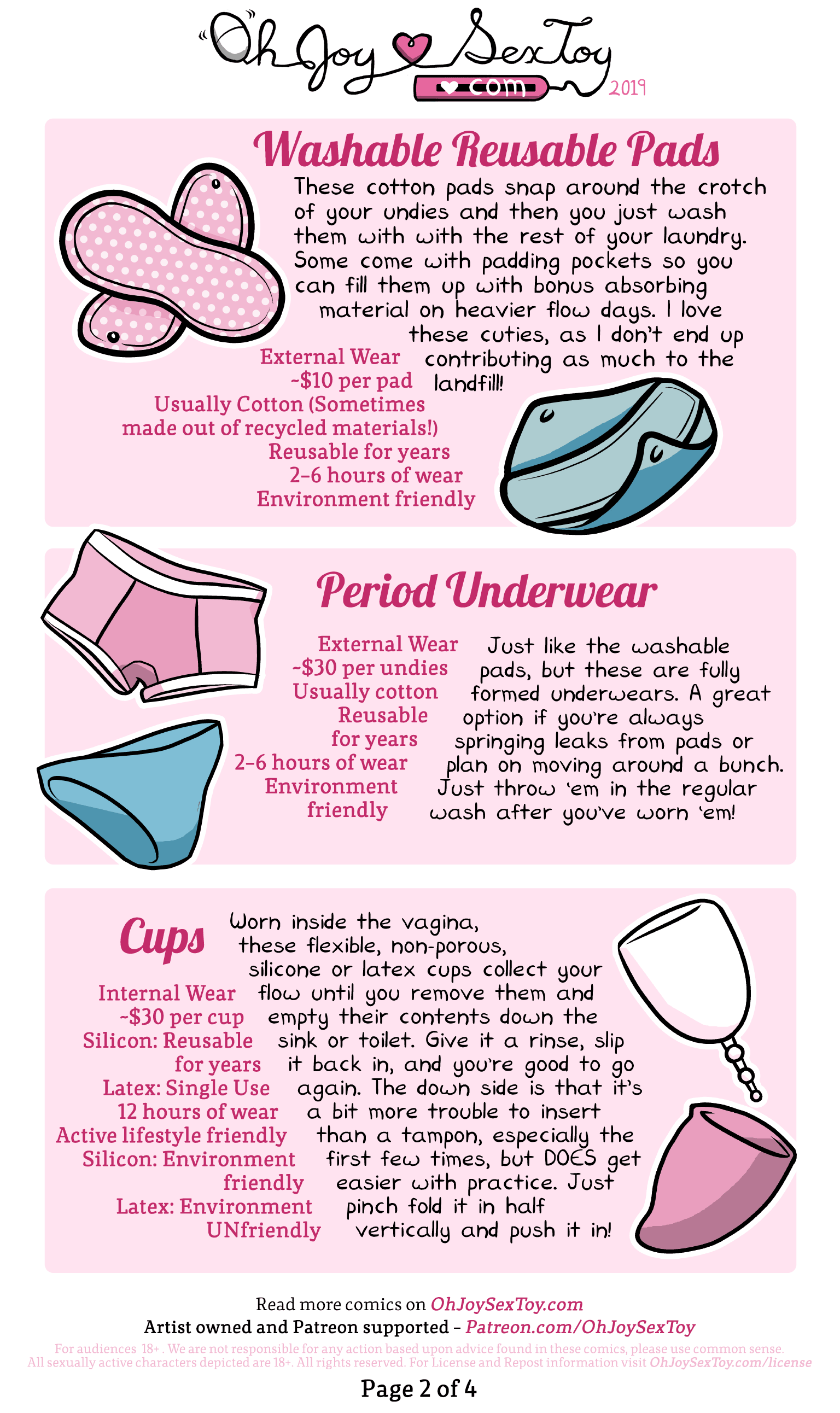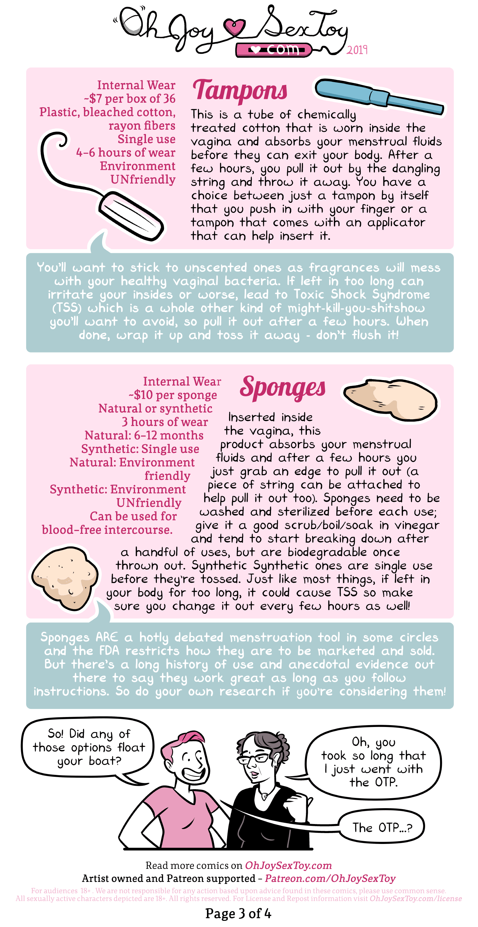 We’ve done A LOT of comics on menstruation, but not a catch-all products-and-tools list! For a more in-depth look at your options, check out Scarleteen’s round up: On the Rag: A Guide to Menstruation