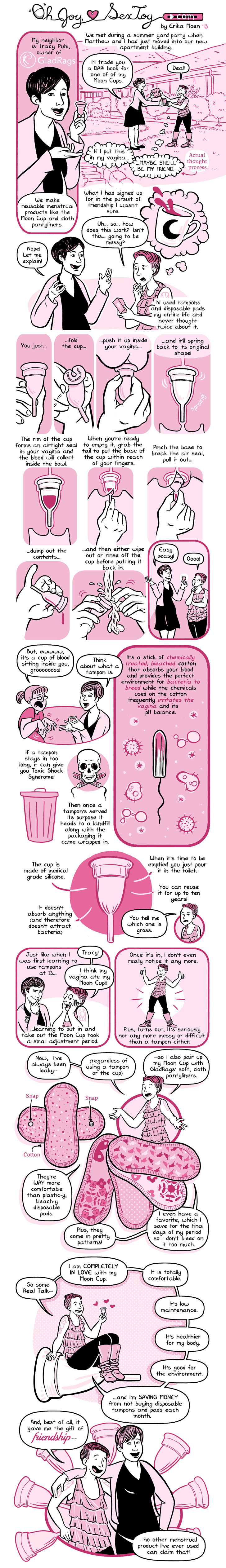 Bwaaaaaah, I’ve been telling Tracy for years that I was gunna do a comic about how much I love GladRags and my Moon Cup and cloth pantyliner’s and at laaaaaaast I finally have.