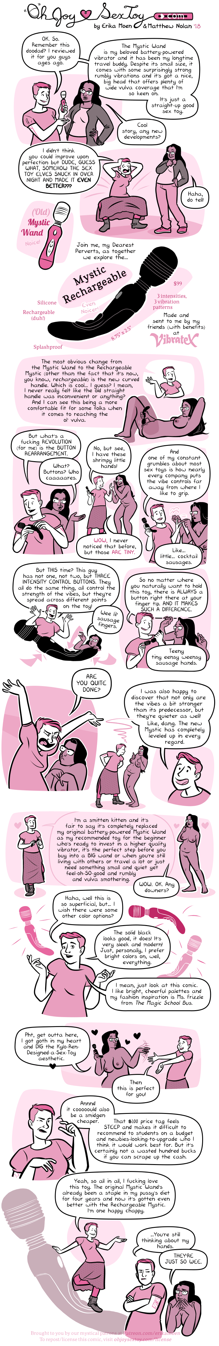 Like I mentioned in the comic, I reviewed the original Mystic Wand waaay back in the day. It is worth checking out that comic not just because I genuinely liked this toy (This was before my sex toy reviewing days so I PAID FULL PRICE FOR IT) but also because, LOL, I discovered it after being eliminated as a contestant on a reality TV show. You can read about it in the aforementioned comic!