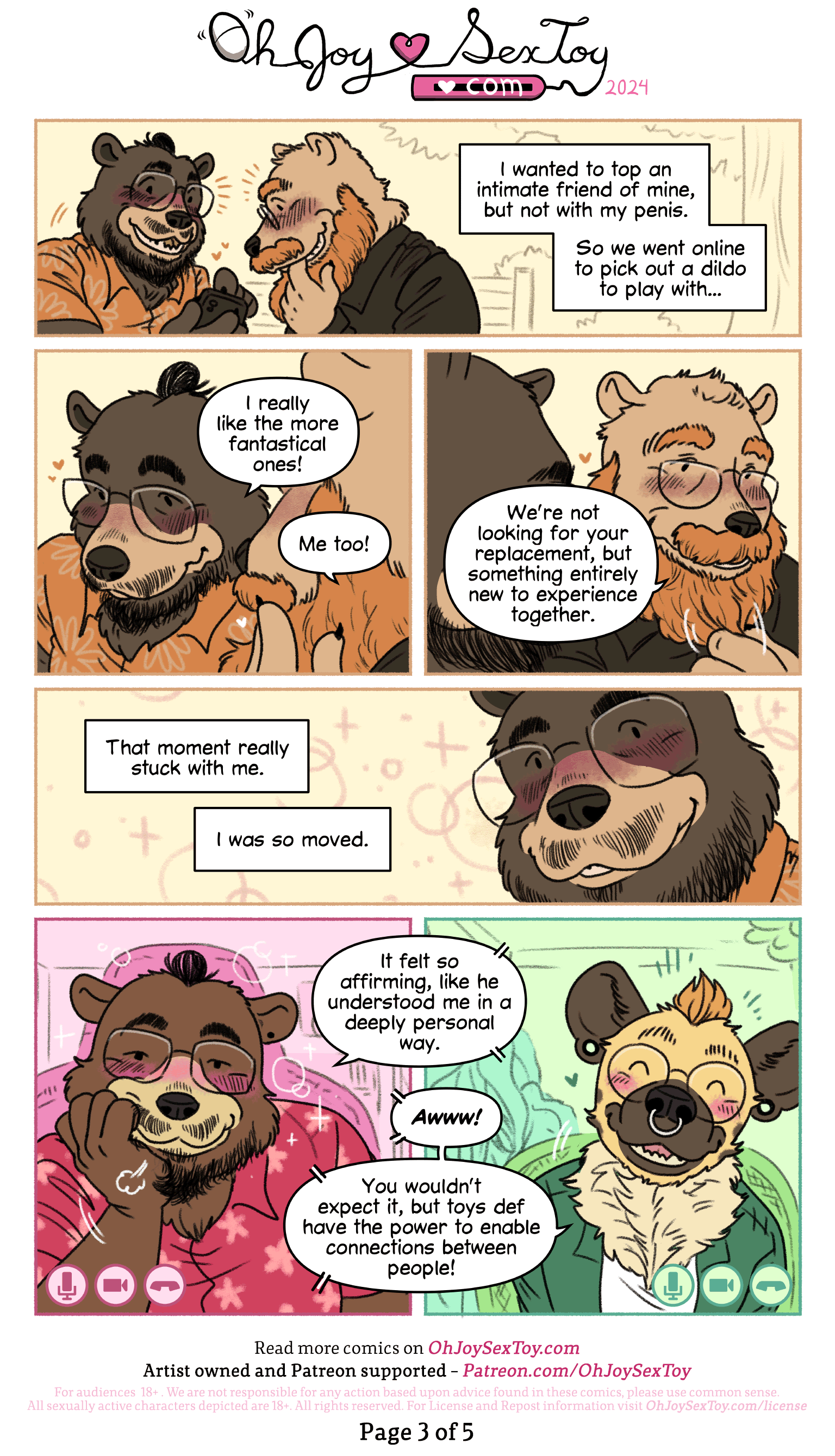 Bear Hien and Hyena Ziggy share with us an honest conversation about toys, relationships and intimacy. It’s a little piece from in between the panels and comics we usually make here, a peek behind the curtain as these two share and hash out what toys mean and bring to their lives.