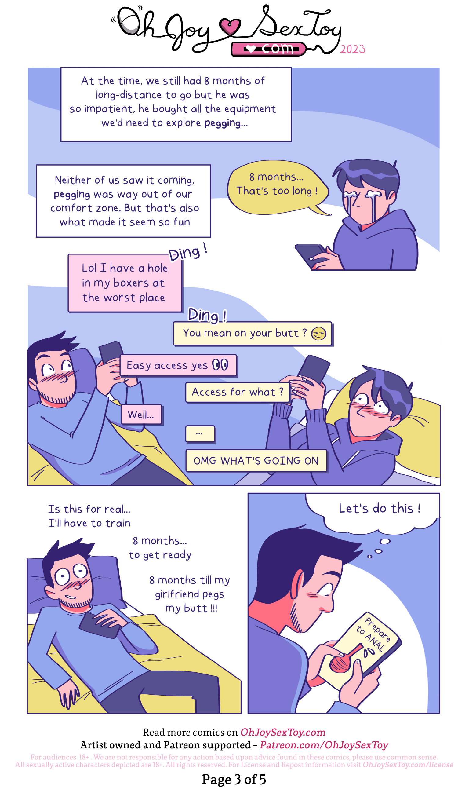 Her boyfriend collapses back on his bed, resting his phone on his chest with his eye wide and delighted, blushing furiously, as he thinks, “Is this for real… I’ll have to train. 8 months… to get ready. 8 months till my girlfriend pegs my butt !!!”