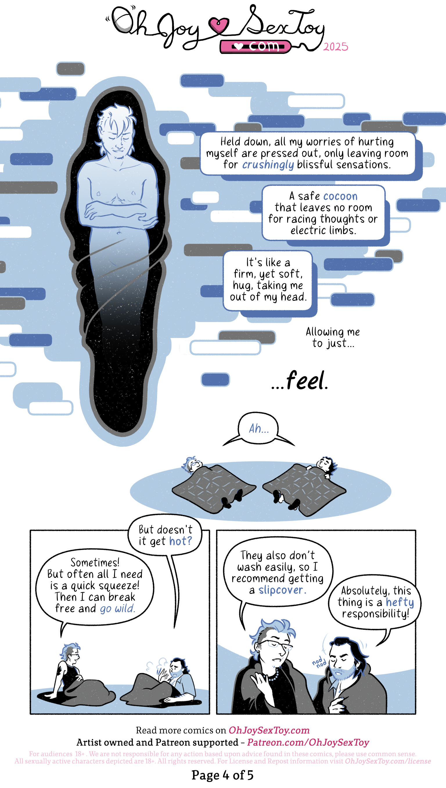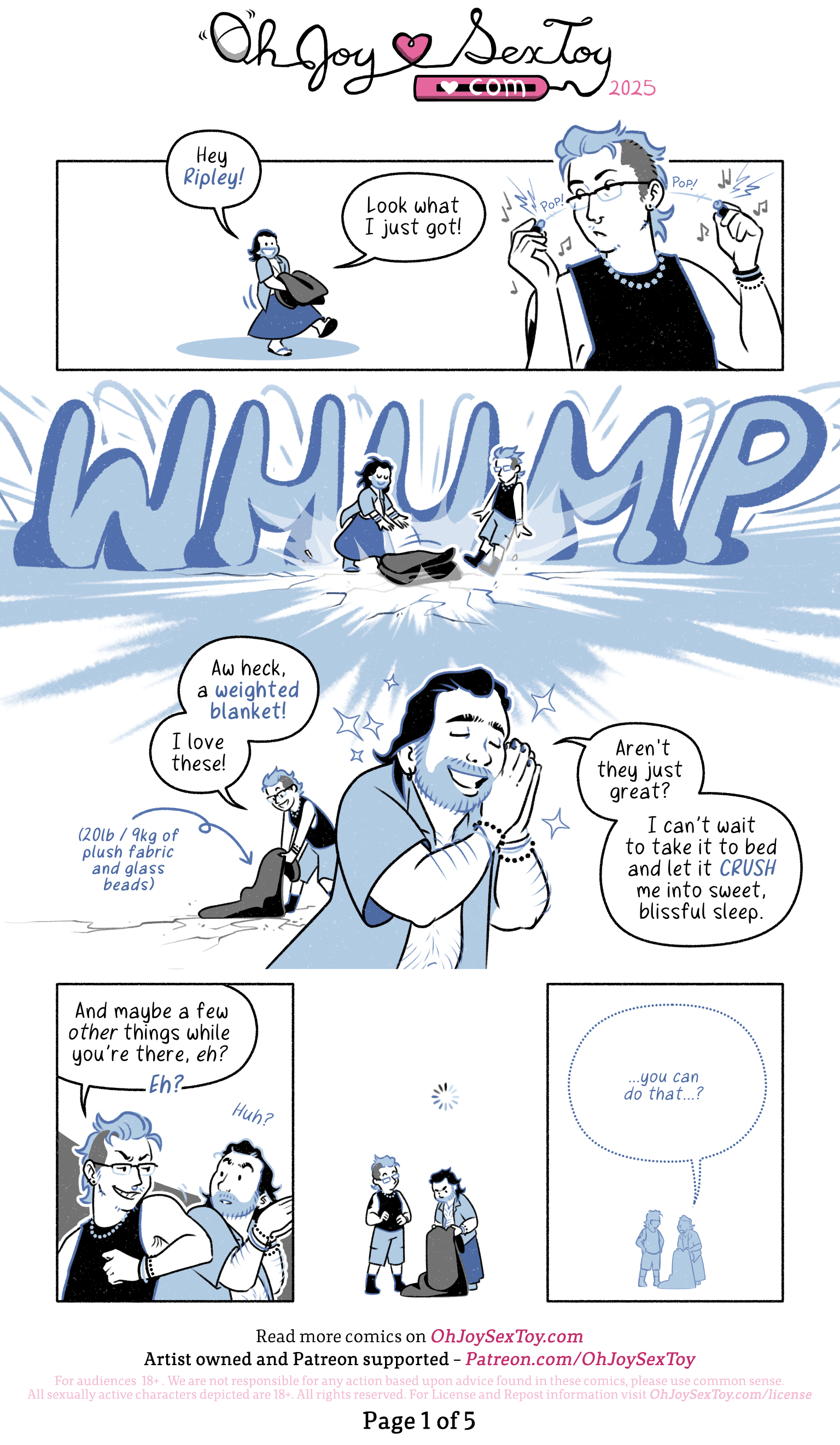 Published April 29, 2025 on ohjoysextoy.com/weighted-blanket-ripley-lacross, transcribed by Erika Moen on April 28, 2025
